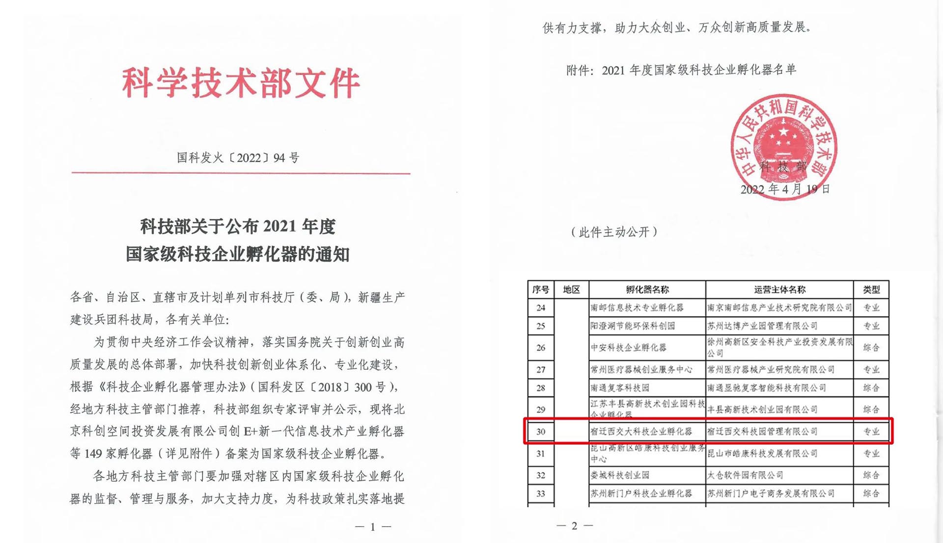 日前,國(guó)家科學(xué)技術(shù)部正式公布2021年度國(guó)家級(jí)科技企業(yè)孵化器名單,研究院宿遷科技園榜上有名,成功獲評(píng)“國(guó)家級(jí)科技企業(yè)孵化器”。