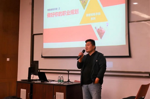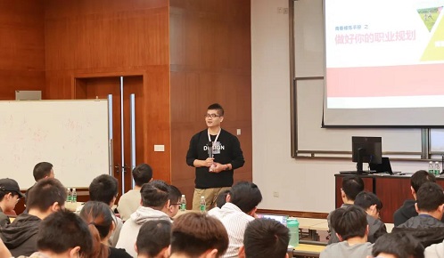 伴隨著同學們熱烈的掌聲,史鵬開始了他的分享。他指出學校學習與企業工作之間存在著認知差異,需要同學們及時做出從校園到職場的思維轉變;通過哈佛大學的一項研究案例,深入淺出的闡述了職業規劃的重要性,進而啟發大家對職業目標的思考。他引用了SWOT分析方法,幫助同學們更好的認識自己,并真切地分享了個人數十年的職業經歷,包括對職場選擇、個人奮斗等話題的深刻感悟。