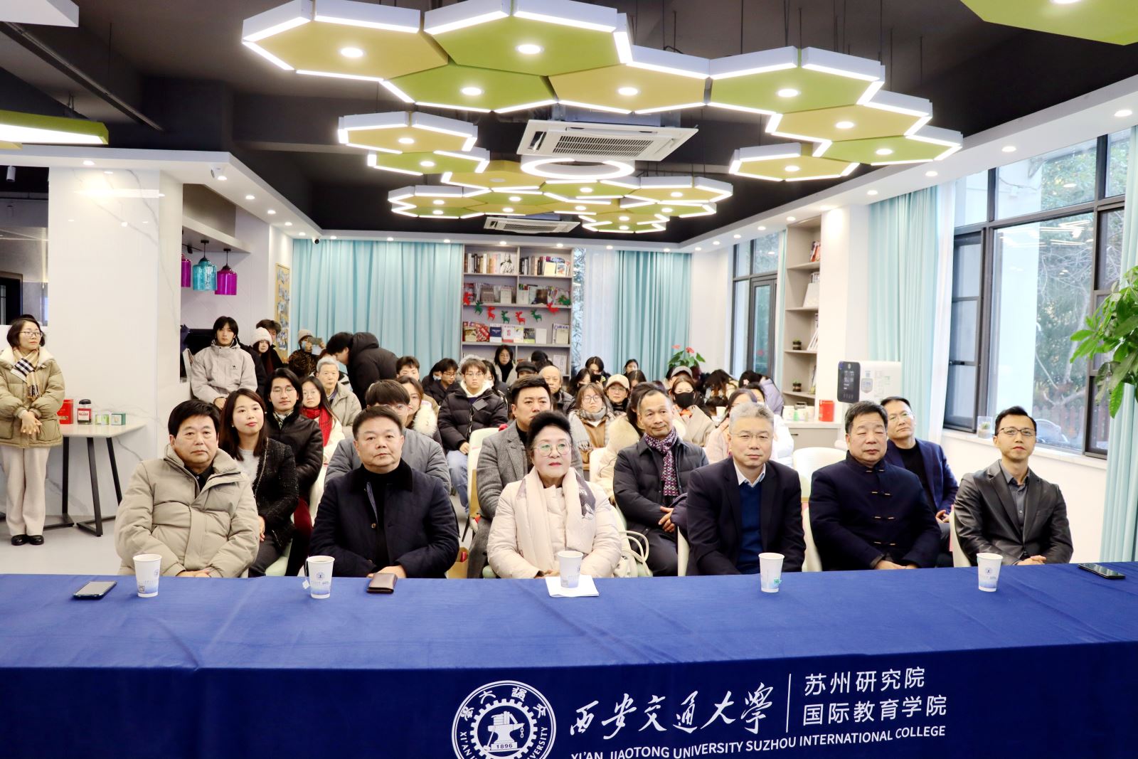 ? ? ? ? 西安交通大學(xué)蘇州研究院主持工作副院長張劍鋒,西安交通大學(xué)蘇州研究院院長助理、西交國際教育理事長余平,中國陶瓷藝術(shù)設(shè)計(jì)大師樓國英,中國工藝美術(shù)學(xué)會(huì)黨委副書記、監(jiān)事長王建良,蘇州職業(yè)大學(xué)教授、江南文化研究院執(zhí)行院長宋桂友,中國工藝美術(shù)大師、蘇州市工藝美術(shù)學(xué)會(huì)會(huì)長邢偉中,蘇州市民盟書畫家協(xié)會(huì)理事、蘇州華僑書畫院理事、中國人民大學(xué)蘇州校區(qū)書畫藝術(shù)教師王華貝,及江南文化研究中心負(fù)責(zé)人王鋒出席并共同啟動(dòng)開幕式。
